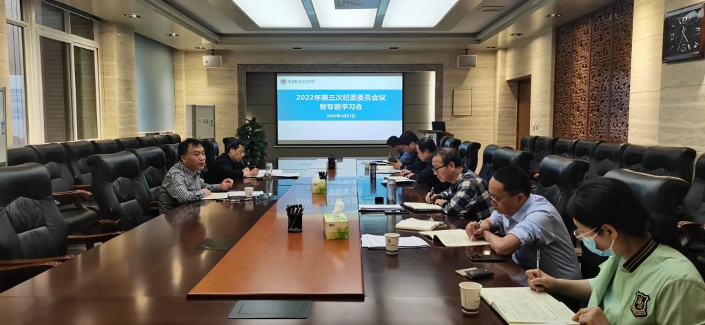 4月27日,校纪委召开2022年第三次纪委委员会议暨专题学习会。党委副书记、纪委书记王勇胜主持会议并讲话校纪委委员,纪委综合室、监督检查室干部参加会议。