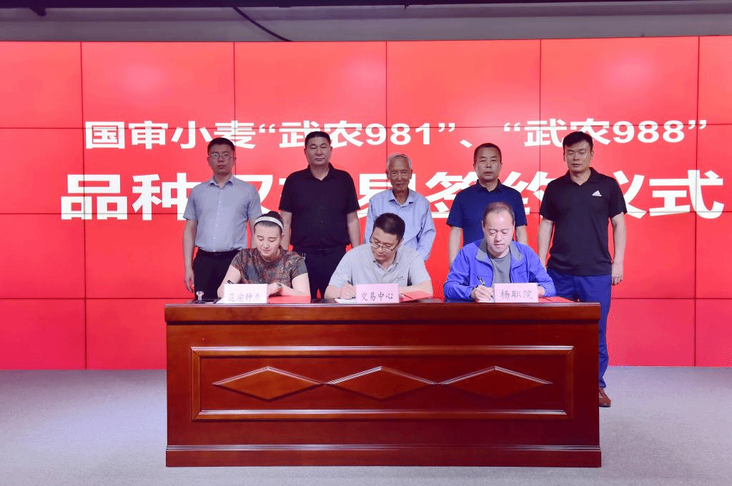 仪式上,冯旭、宋宇付井莲共同签订了武农981”和“武农988”小麦品种权实施许可协议。许可协议期限为一年,签约金额100万元主要是江苏和安徽小麦主产区的生产、包装、推广和销售权许可。