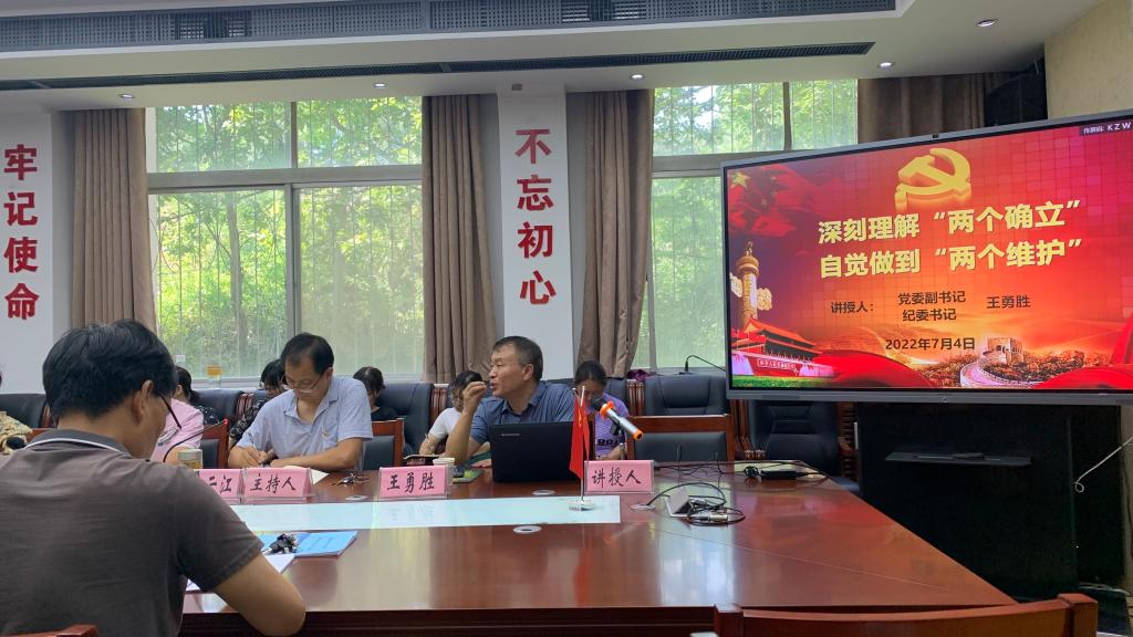 7月4日下午,党委副书记、纪委书记王勇胜深入文理学院,以《深刻理解“两个确立”,自觉做到“两个维护”》为题,为学院全体党员及教职工讲专题党课。