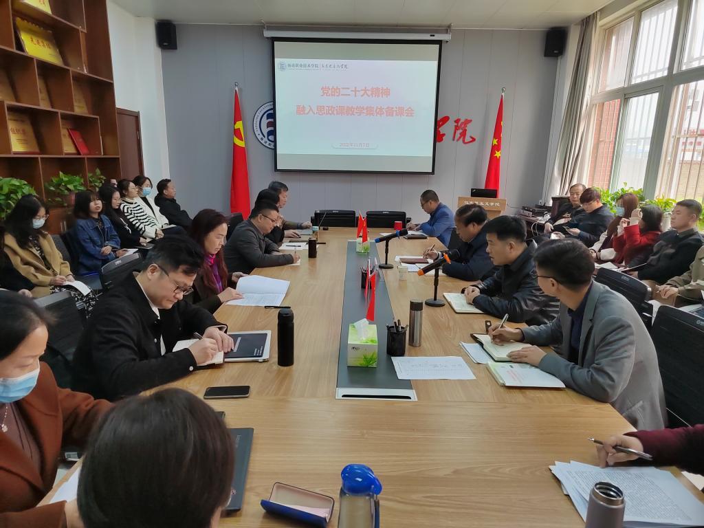 11月7日下午,马克思主义学院组织全体思政教师围绕“党的二十大精神融入课堂教学”进行集体备课,深入学习研究阐释宣传党的二十大精神。党委书记王周锁出席集体备课会。