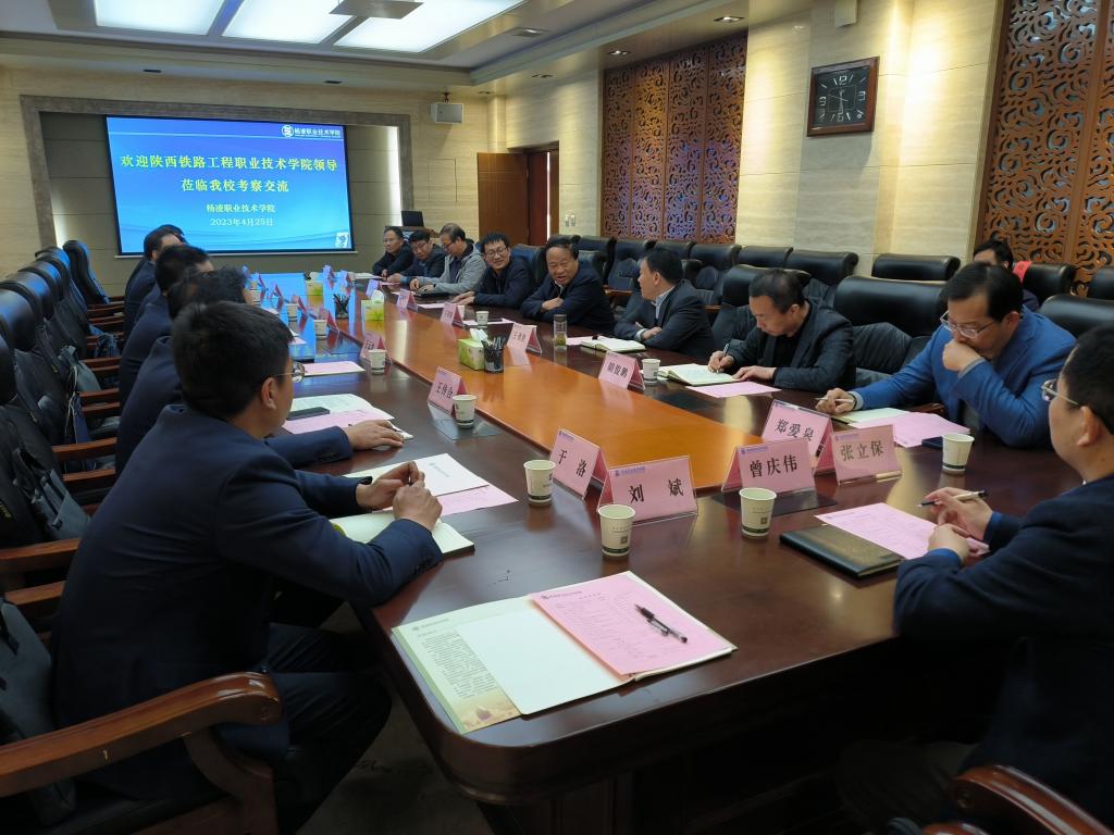 4月25日下午,陕西铁路工程职业技术学院党委副书记、纪委书记黎炜,党委委员、副校长贺建锋一行11人来我校考察交流。我校党委书记王周锁,党委副书记、纪委书记王勇胜,副校长蒋平江、胡俊鹏,以及纪委监督检查室、发展规划处、产教融合处、科技与教育研究处、信息化建设与管理处、财务处、基建处相关负责人参加了座谈会。