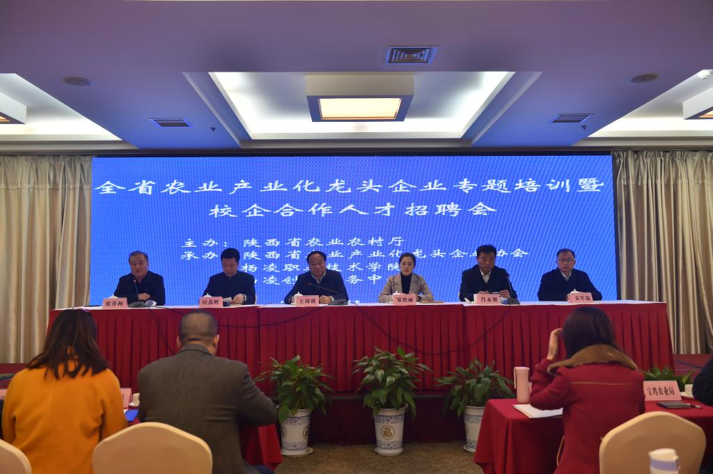 11月13日,由陕西省农业厅主办、我院和陕西省农业产业化龙头企业协会承办的全省农业产业化龙头企业专题培训暨校企合作人才招聘会在我院举行。院长王周锁,省农业厅产业化处副处长邹艳丽,杨凌示范区农业局局长肖永贤,以及我院招生就业处、生物工程分院负责人参加了会议开幕式。