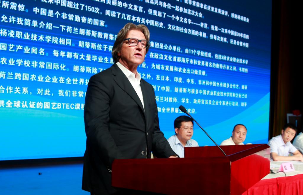 会上,杨凌职业技术学院党委书记赵曼,杨凌示范区党工委委员、管委会副主任刘天雄,教育部职业教育与成人教育司农村教育处处长刘杰,荷兰朗蒂斯教育集团总监范康普博士分别致辞。刘建林、刘天雄、赵曼、刘杰和陕西省教育厅高教处处长胡海宁共同启动“西北农林水高职教育发展峰会”仪式,中国杨凌现代农业职业教育集团秘书长、杨凌职业技术学院副院长、西北农林水高职教育发展峰会秘书长张永良介绍了峰会发起相关情况。中国杨凌现代农业职业教育集团与荷兰朗蒂斯教育集团签订了《开展涉农专业职业教育师资培训和技术咨询》合作备忘录;杨凌职业技术学院与中兴通讯股份有限公司签订了“中兴通信学院”共建协议书,并举行了揭牌仪式。