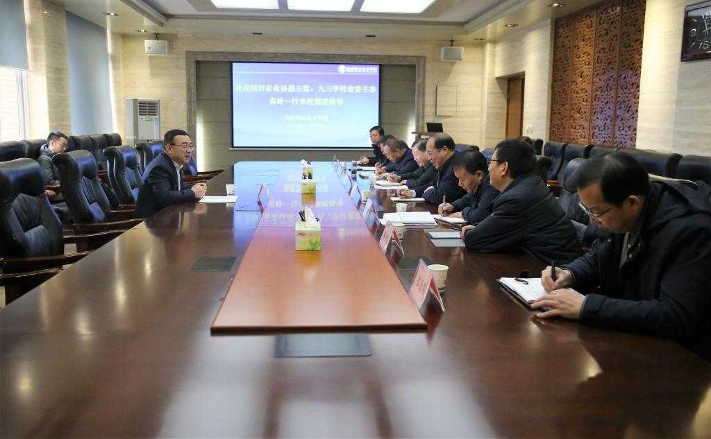 12月20日下午,省政协副主席、九三学社省委主委高岭来校调研指导工作。校长仲伟周党委副书记、纪委书记王勇胜,副校长祝战斌、蒋平江、胡俊鹏,以及党政办公室、基建处、图书馆等部门负责人参加座谈
