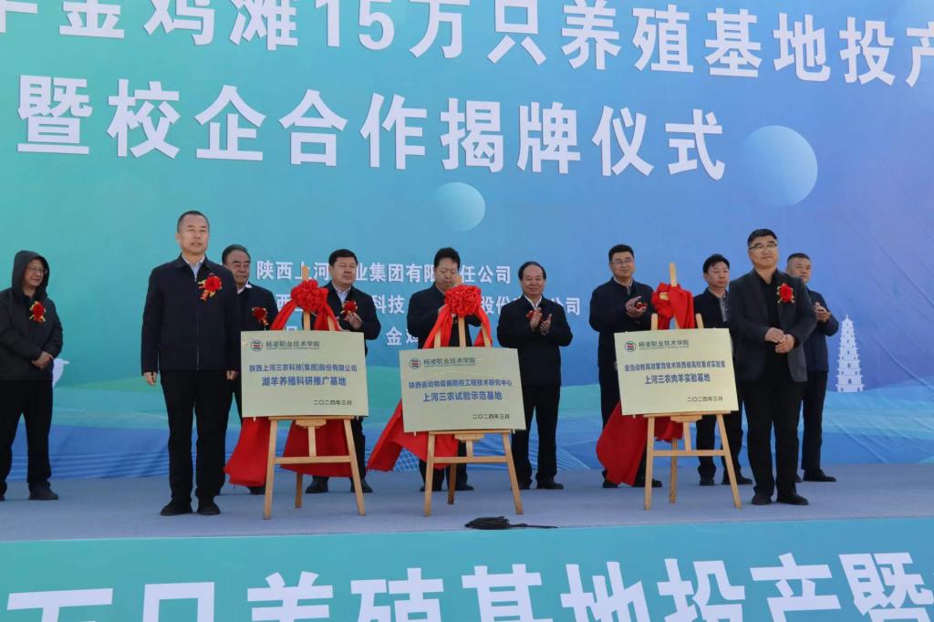 活动中,胡俊鹏为学校“陕西上河三农科技(集团)股份有限公司湖羊养殖科研推广基地”、“陕西省动物疫病防控工程技术研究中心上河三农试验示范基地”、“反刍动物高效繁育技术陕西省高校重点实验室上河三农肉羊实验基地”揭牌,这标志着学校将建成集肉羊健康养殖、疫病防控和高效繁育技术于一体的综合性校企合作示范基地。