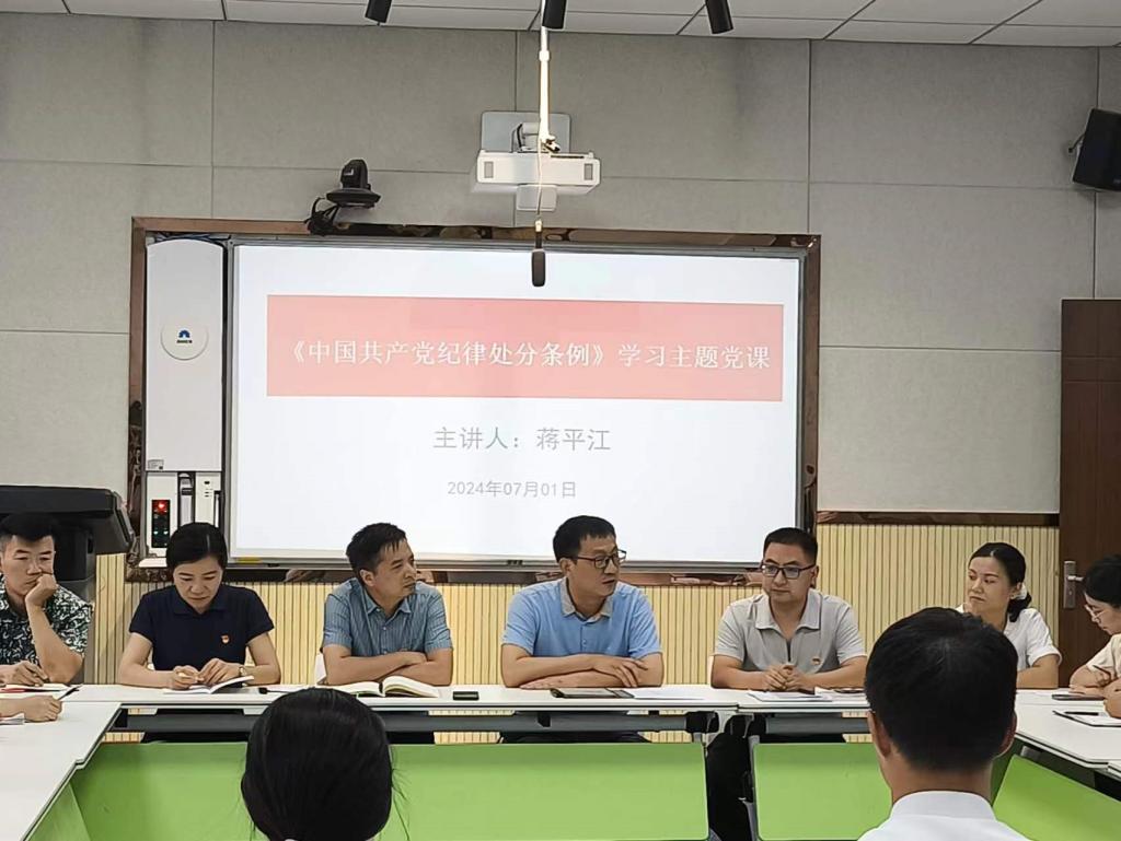 蒋平江介绍了《中国共产党纪律处分条例》的修订背景要求和历史沿革,解读了“六大纪律”修订的主要内容。他指出,纪律是管党治党的戒尺,也是党员干部约束自身行为的标准和遵循,党员们要充分认识加强纪律建设的重要性,以开展党纪学习教育为契机,在学习党规党纪上下功夫,准确掌握“六大纪律”的具体内容,以反面典型案例为镜鉴,筑牢廉洁自律思想防线,不断增强政治定力、纪律定力、道德定力和抵腐定力,以饱满的热情和扎实的工作作风投身到学校事业发展中去。