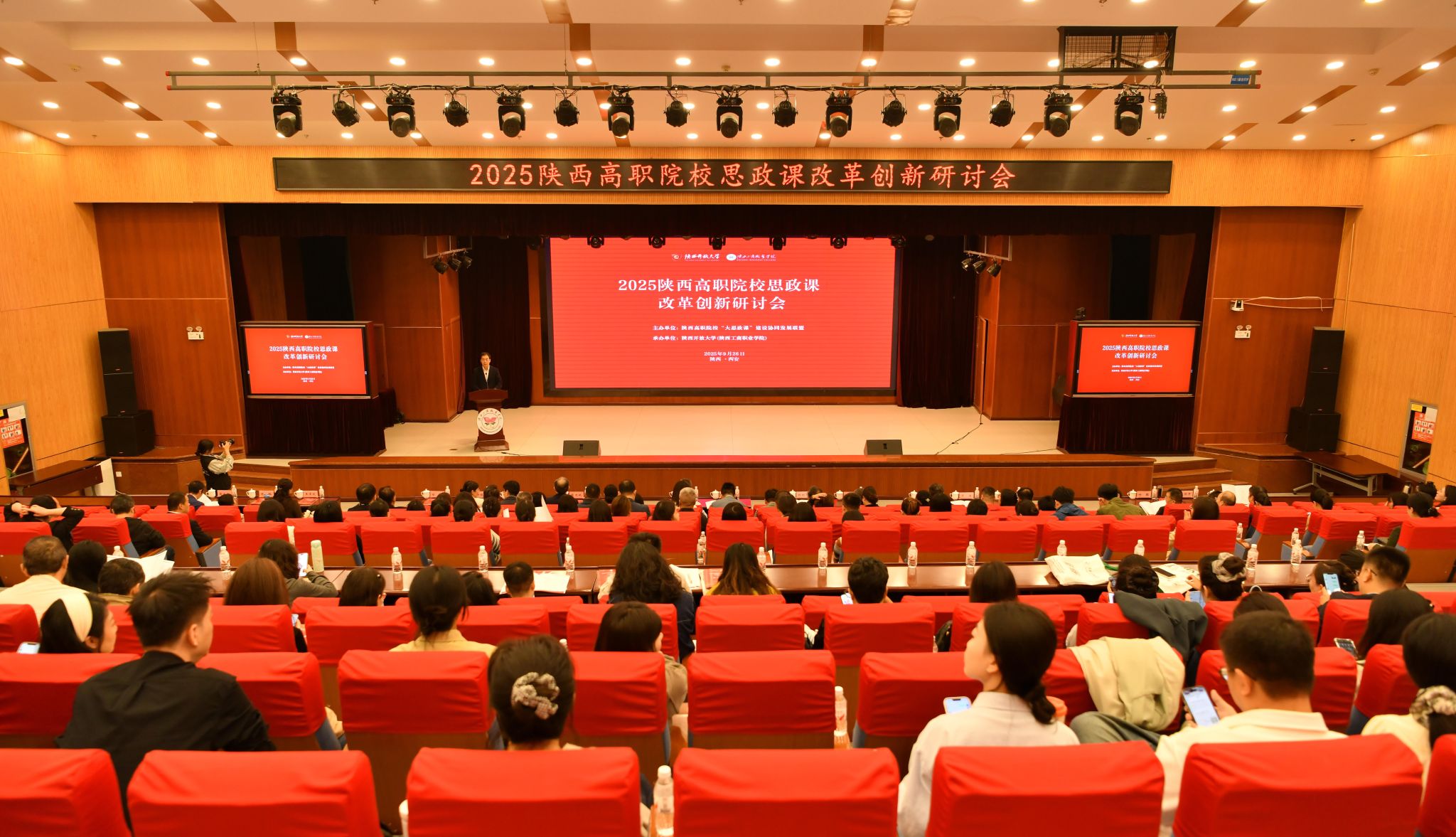 9月26日,由陕西高职院校“大思政课”建设协同发展联盟主办的2025年陕西高职院校思政课改革创新研讨会在陕西开放大学(陕西工商职业学院)举办。省委宣传部副部长李晓刚、省委教育工委宣传部副部长王世娟出席会议。联盟理事长、我校党委书记韩明军,陕西开放大学(陕西工商职业学院)党委书记龙治刚,党委副书记、校长吴宏梅,联盟副理事长、我校党委副书记刘瑞明参加会议。