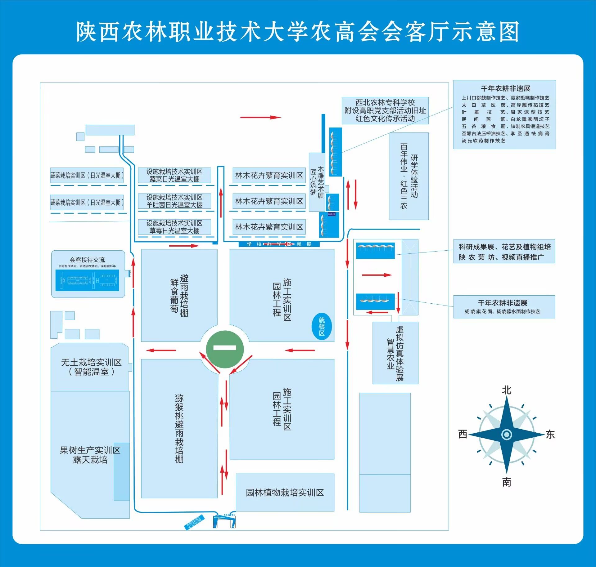 陕农大“农高会会客厅”活动由杨凌示范区管委会和陕西农林职业技术大学主办,杨凌示范区党工委宣传部、陕西农林职业技术大学党委宣传部承办,以“聚力·融合·交流·赋能”为主题,将于10月25日至29日在陕农大农林综合实训基地(西农路10号)举行。展区面积2万平方米,由党支部活动旧址红色文化传承活动、百年伟业·红色三农研学体验活动、科教兴农·匠心传承主题展、会客接待交流等四大核心板块组成。