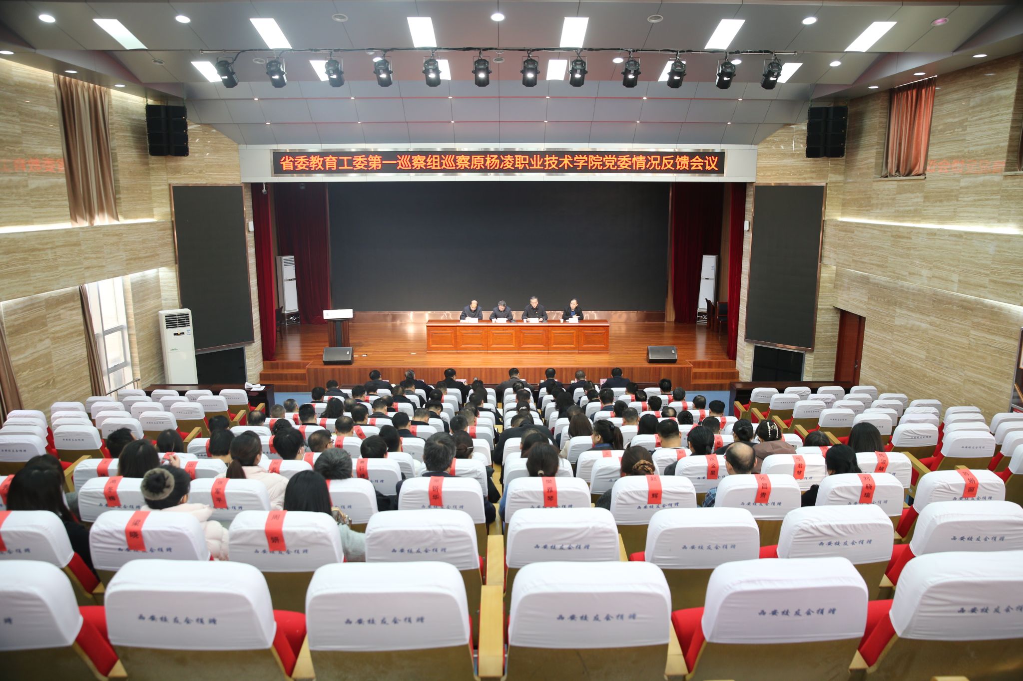 巡察组副组长崔晓博、联络员张扬,陕西农林职业技术大学领导班子成员出席反馈会。学校职能处室副处级以上干部、学院(部)党政负责人、副高以上职称专业技术人员代表列席会议。