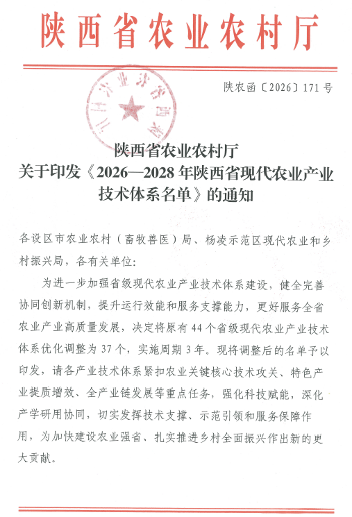 近日,省农业农村厅公布了2026至2028年度陕西省现代农业产业技术体系名单,我校共有29位老师入选。其中,张振仓教授担任生猪产业技术体系推广首席专家,王燕教授担任蜂产业技术体系科研首席专家。