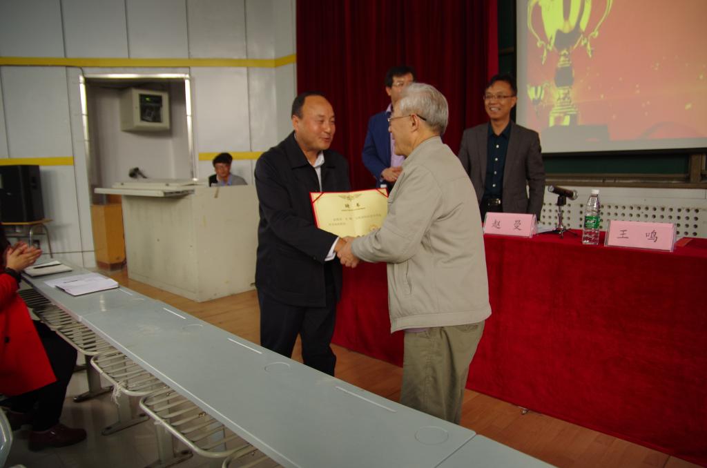 党委书记赵曼为王鸣教授颁发“终身客座教授”聘书