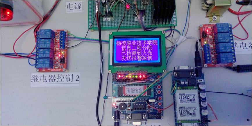 检测到火光,显示模块显示火光报警及短信已发送