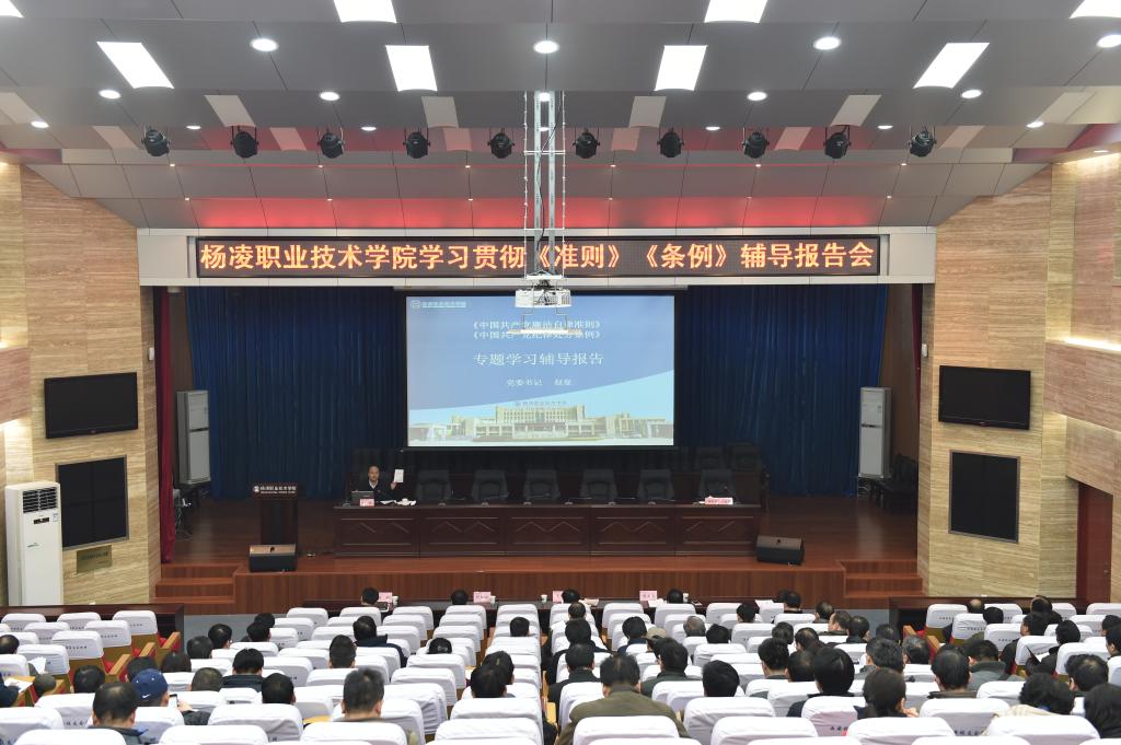 ,院党委书记赵曼为科级以上干部、各党支部书记作了学习《准则》《条例》专题辅导报告。报告全面阐明《准则》《条例》修订的重大意义、基本情况、主要特点、主要内容和贯彻落实的基本要求,重点围绕违反政治纪律、组织纪律、廉洁纪律、群众纪律、工作纪律、生活纪律等“六大纪律”的行为“负面清单”进行了详细解读,提出了学院进一步学习宣传落实《准则》《条例》的基本要求,并告诫和要求全体党员,特别是党员领导干部一定要牢固树立党章党规党纪意识,做到守纪律、讲规矩,知敬畏、存戒惧。专题辅导报告会上,纪委书记刘粉莲要求全体党员特别是党员领导干部在学习宣传贯彻《准则》《条例》中,一定要切实增强追求道德高线、守住廉洁底线、远离违纪红线的思想意识,努力推进学院形成尊崇制度、遵守制度、捍卫制度的良好风尚。