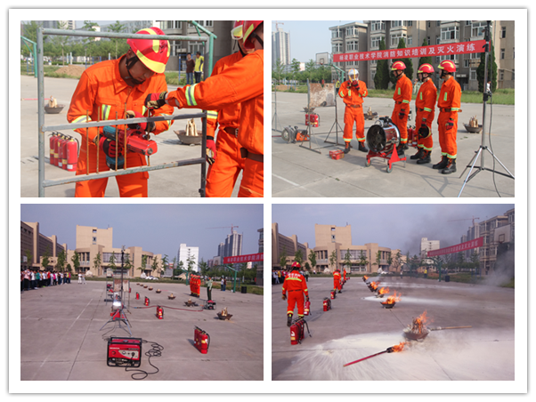 在第7个全国防灾减灾日来临之际,为普及消防安全知识,增强广大师生的消防安全意识,提高处置突发火灾的应急能力,5月11日下午,我院学保处在南校区原二中篮球场举办了消防安全知识培训和灭火演练活动,邀请杨凌示范区消防支队特勤中队的20余名指战员现场培训指导。学院各分院学生代表,全体辅导员、班主任,学院义务消防员,保安队队员,机关各处室教职工代表及教务处、后勤处、图书与信息中心、学生公寓等消防重点单位职工共计300余人参加了现场培训和演练。
