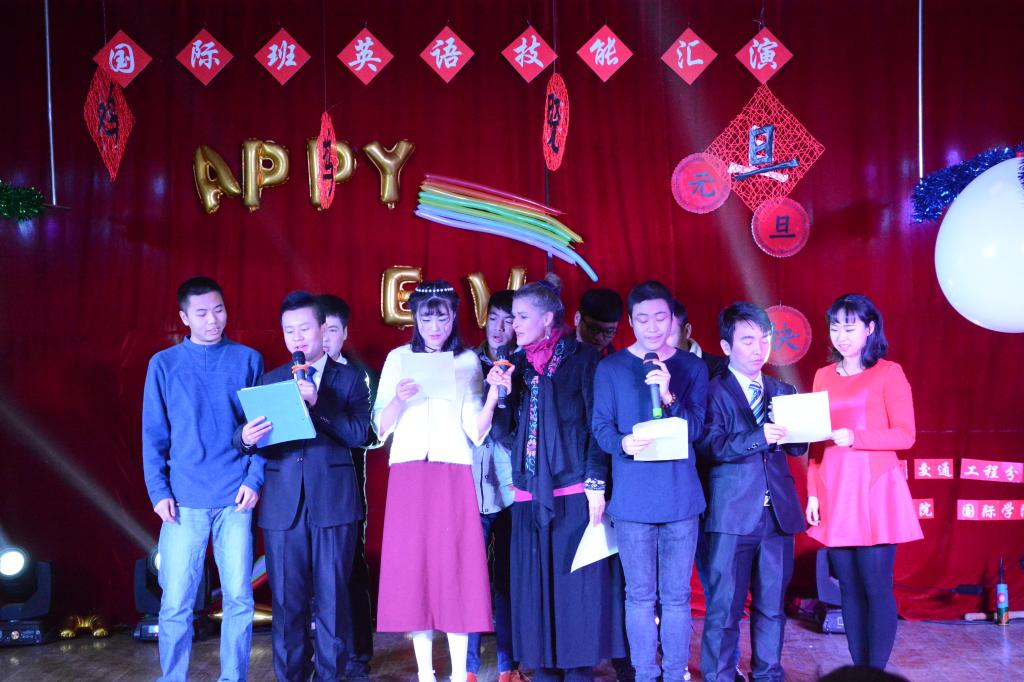 12月30日,由建筑工程分院、水利工程分院、交通与测绘工程分院、机电工程分院、国际学院共同举办的国际班英语技能汇演在南校区大学生活动中心举行。汇演前,建工国际班、人事教师处拜存有负责人和外教Katalin女士分别作了讲话,对国际班取得的阶段性成果给予肯定,并对今后的工作提出了希望和要求。