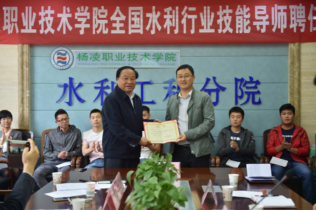 5月11日上午,杨凌职业技术学院全国水利行业技能导师聘任仪式在天润楼举行。院长王周锁、副院长王晓地、张永良,教务处处长张宏辉出席会议,仪式由人事处处长拜存有主持。