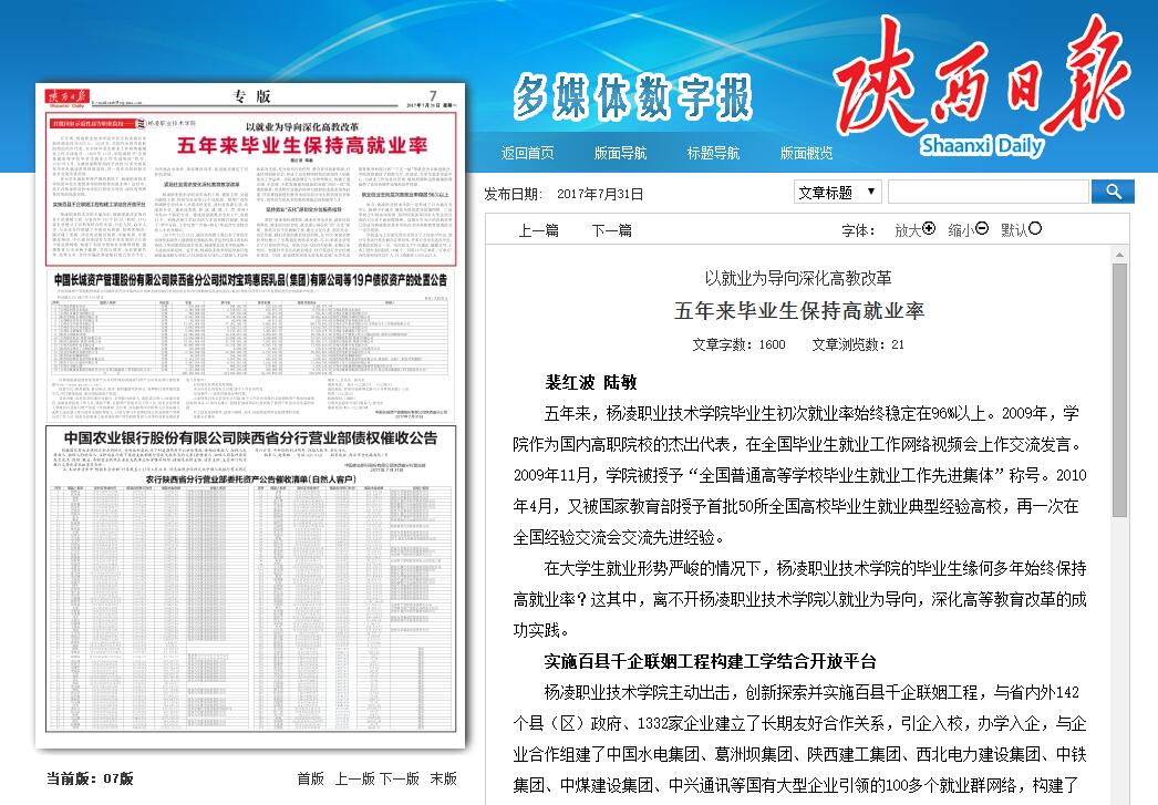 【陕西日报】以就业为导向深化高教改革 五年来毕业生保持高就业率