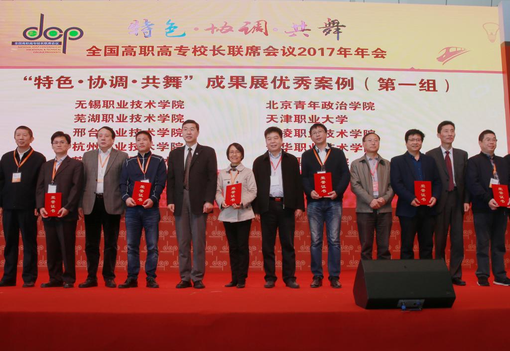 我院被评为高等职业院校服务贡献50强,院长王周锁上台领奖