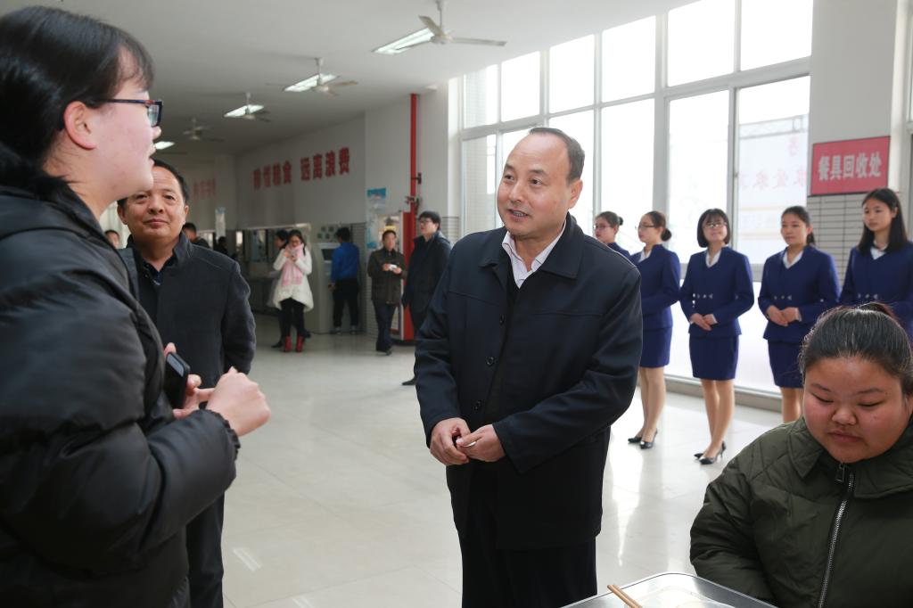 上午10点半,我院南、西、北三个校区的餐厅里,已有不少学生陆续拿着餐券在各个橱窗前排队等候,不一会儿,一盘盘热腾腾的饺子就已上桌。吃着热腾腾的饺子,大家有说有笑。到了中午用餐时间,我院党委书记赵曼、院长王周锁、党委副书记任得元、副院长张永良、纪委书记刘粉莲、副院长张迪和全国著名小麦育种专家、我院研究员赵瑜也相继来到三个校区的餐厅,与学生们一起吃饺子、过冬至。