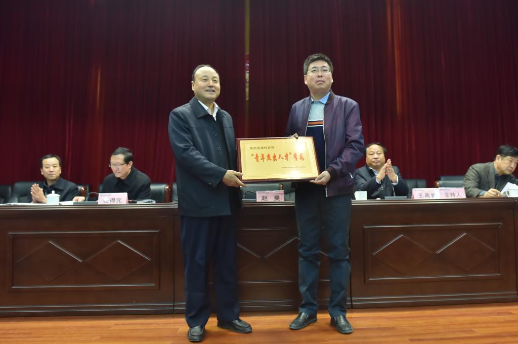 党委书记赵曼“青年杰出人才”入选者李龙颁奖