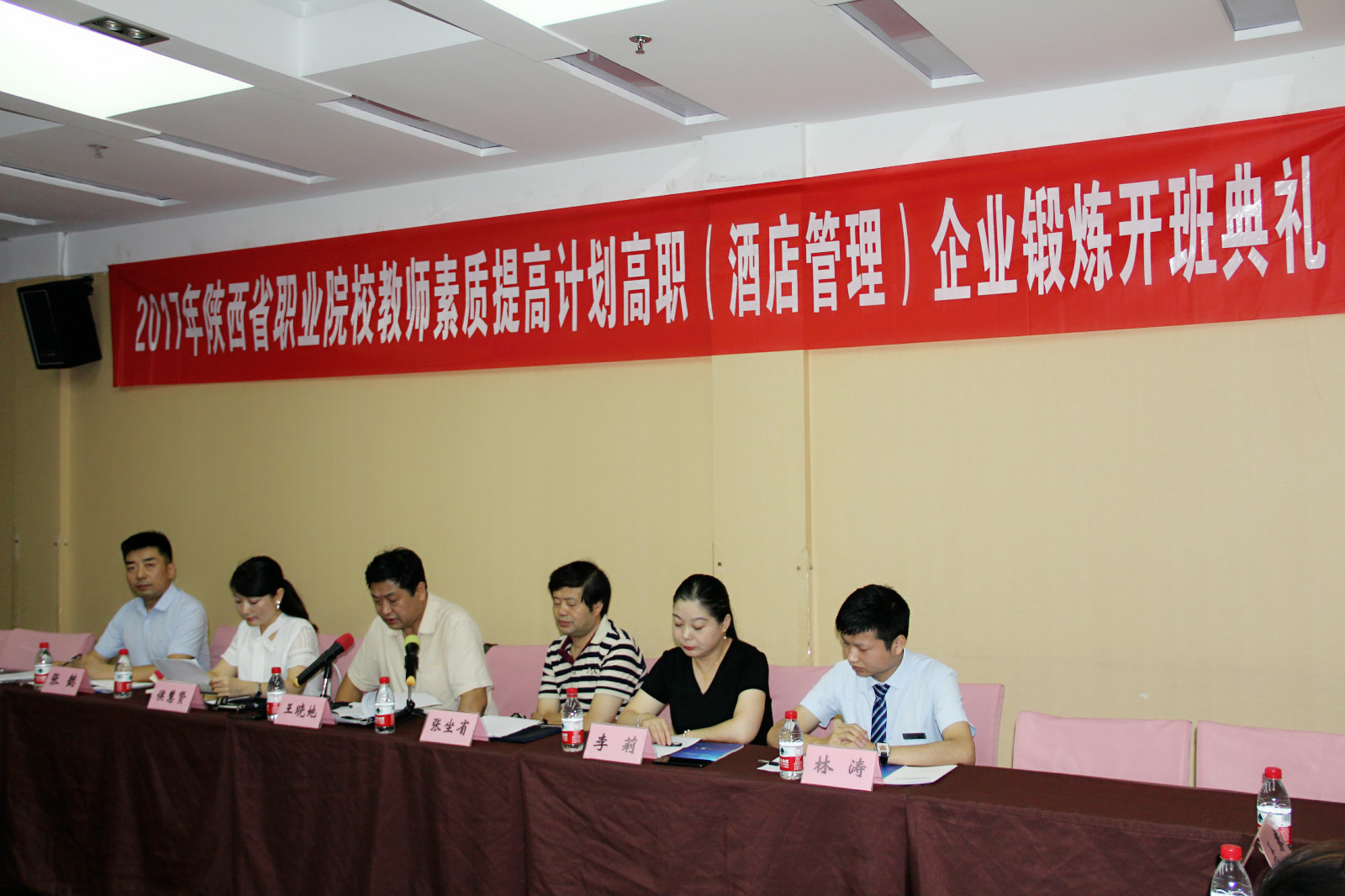 94日,由教育部、财政部、省教育厅主办,我陕西山水国际旅游文化公司、南方大酒店联合承办的“2017年职业院校教师素质提高计划国家级培训暨教师企业实践项目培训班”开班仪式在西安举行我院副院长王晓地,以及我院继续教育与培训学院、两个校企单位负责人,来自陕西中高职23职业院校的30名学员参加了开班仪式。