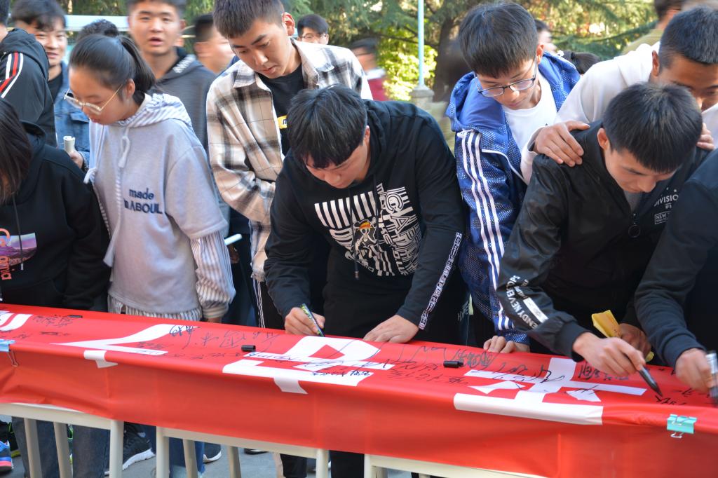 10月29日下午,建筑工程分院在南校区水善厅西广场及北校区致用楼南广场同步举办了“树法纪意识,走平安之路,养文明言行,创和谐校园”主题师生签名活动,学院党委学工部(处)、保卫部(处)有关负责同志以及分院全体师生参加了该项活动。活动现场,师生积极热情参与,纷纷郑重签名。