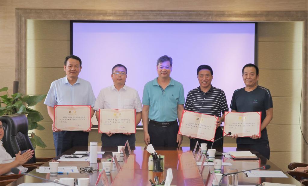 张迪向常青山、郭庆宏、张周、乔冰涛颁发动物工程分院产业教授聘书