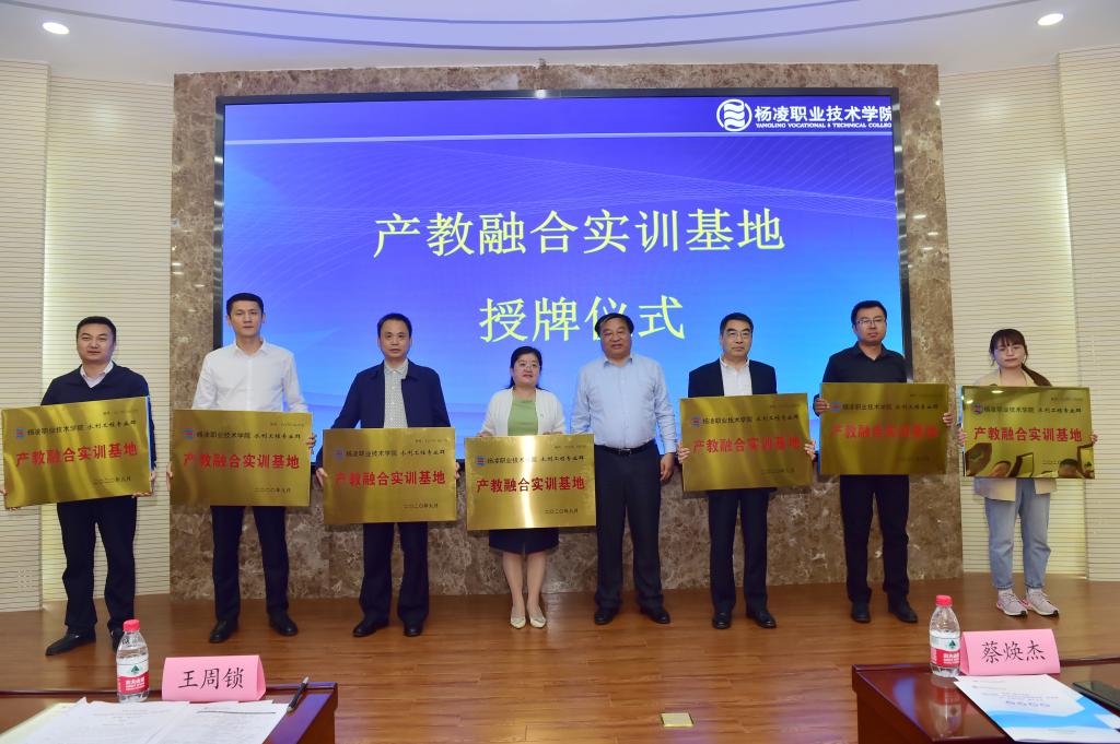 会上宣布了“中水学院”成立决定,“中水学院”领导机构为院长张迪、常务副院长郝红科、书记刘儒博、副院长周孝武、王国强、张卫宁、郭旭新。中水学院为水利工程专业群“政行企校”四方合作发展理事会成立的产业学院,为今后的水利工程分院、海外分院、企业学院等培养高水平技术技能人才,为企业提供高水平技术技能服务奠定基础。随后,政、行、企、校、代表共同为中水学院揭牌,会议签订了校政、校企合作协议,为6家企业颁发了产教融合实训基地牌,聘请了全国水利首席技师王战义为技能导师,聘任蔡焕杰、胡笑涛、闫星、贺群为客座教授,聘任张卫宁、吴学庆、任铁牛、王拴定、许荣辉为产业教授,12家企业向学院授“人才培养基地”牌。