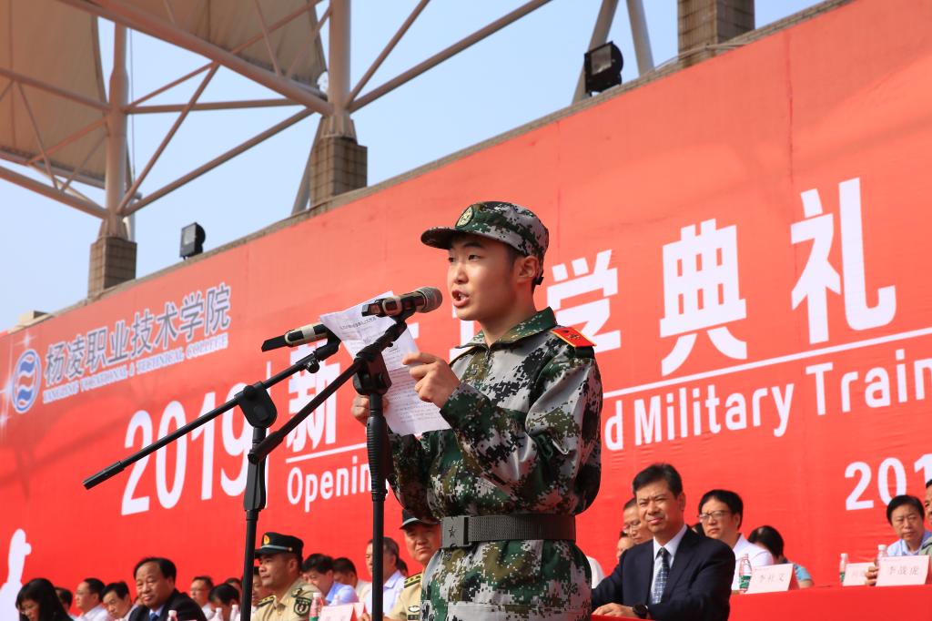 开学典礼暨军训动员大会上,动物工程分院教师李龙交通与测绘工程分院2019级新生杜春晖分别作了发言
