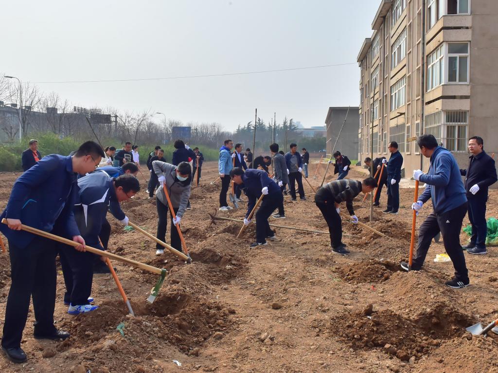 为积极响应国家大力开展植树造林的号召,进一步提升校园环境和绿化水平,植树节当天下午,校领导陈宁、王周锁、任得元、刘粉莲、张迪、祝战斌,以及各处室、学院部分干部职工来到校史馆西侧空地开展植树活动,以实际行动履行植树义务建设美丽校园