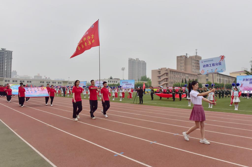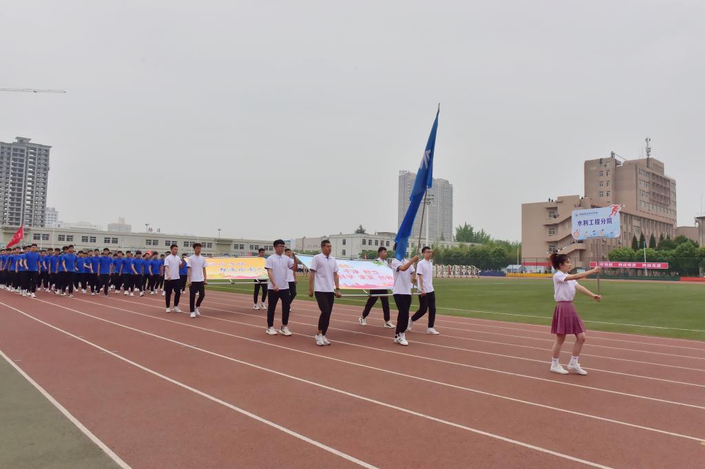 展青春风采,扬运动雄风。4月22日至23日,我校2021年春季田径运动会在南校区体育场举行。学校党委副书记、校长王周锁,副校长张迪、祝战斌、胡俊鹏,各学院(部)党总支书记、院长、各处室(中心)负责人以及大一、大二辅导员、学生近万余人参加了开、闭幕式。来自11个学院的400余名运动员参加了28个项目的角逐。