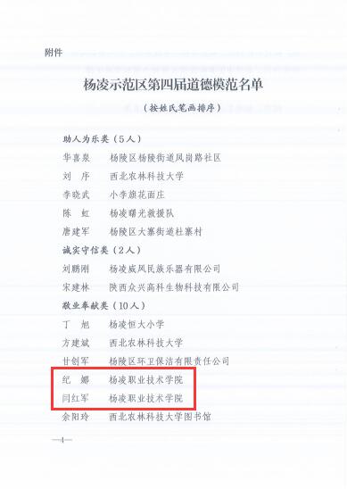 11月5日,杨凌示范区文明办公布了第四届道德模范名单,共有25人获示范区第四届道德模范称号。
