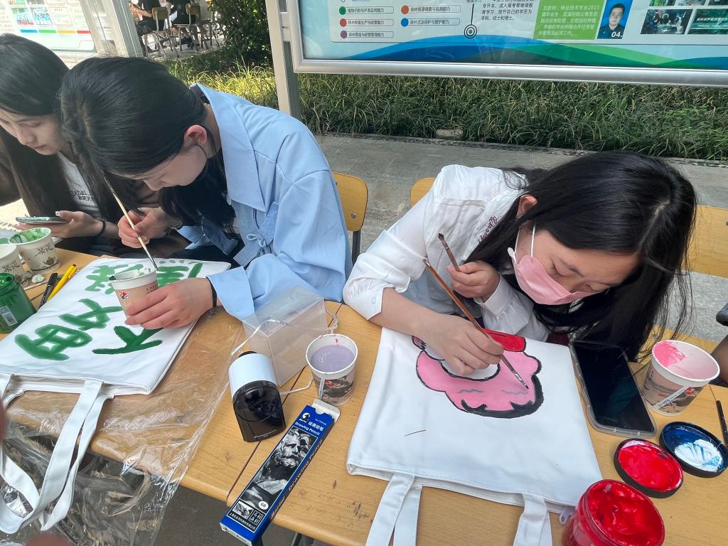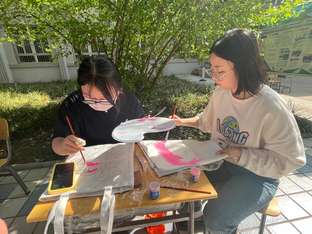 活动现场,同学们用画笔和彩色颜料在白色短袖背包口罩上进行绘画,放飞想象、尽情创作充分表达出自己的想法和感受活动共收集作品近百件,同学们用画笔袒露心声,缓解了心理压力,营造健康向上的心理氛围培养自身创造力与想象力促进了同学们的交流与互动,也增添校园艺术气息