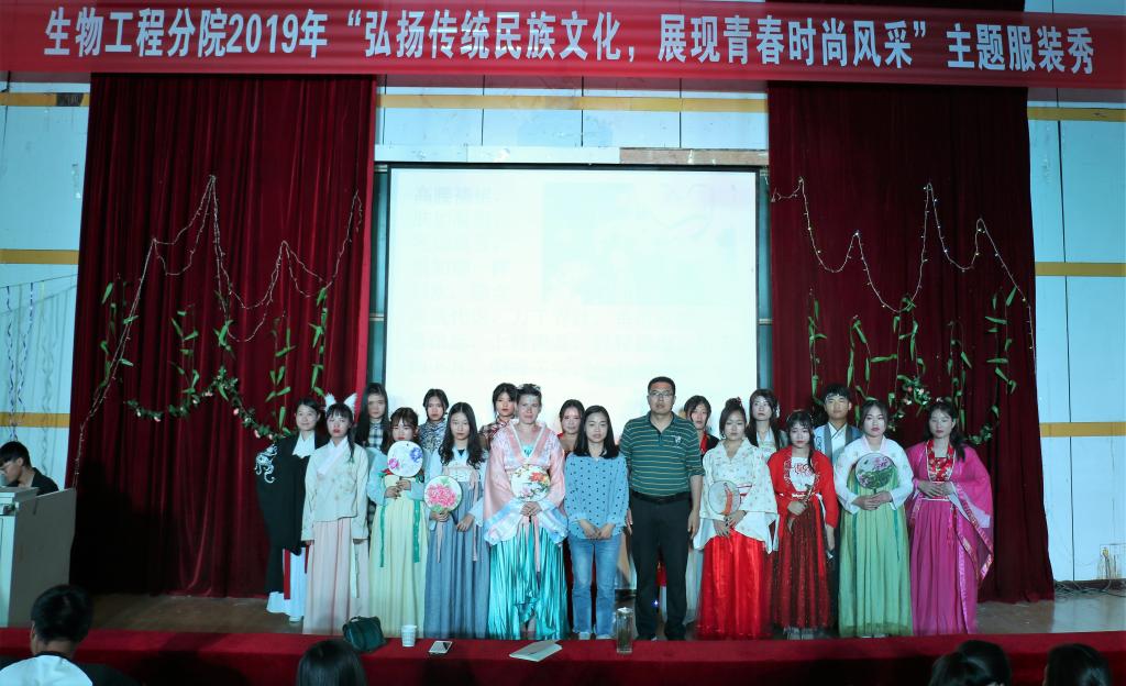 为大力弘扬中国传统文化,展示传统民族服装之美,2019年5月21日晚,生物工程分院联合国际学院在西校区台阶教室举行“弘扬传统民族文化,展现青春时尚风采”主题服装秀活动。生物工程分院、国际学院师生200余人参加了展示活动。