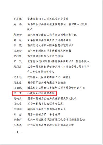 近日,陕西省妇联通报表彰了一批奋战在全省各行业工作一线的优秀女职工代表,杨凌职业技术学院水利工程学院张宏教授荣获陕西省三八红旗手称号。此次共有10名陕西省三八红旗手标兵、90名陕西省三八红旗手、49个陕西省三八红旗集体受到通报表彰。