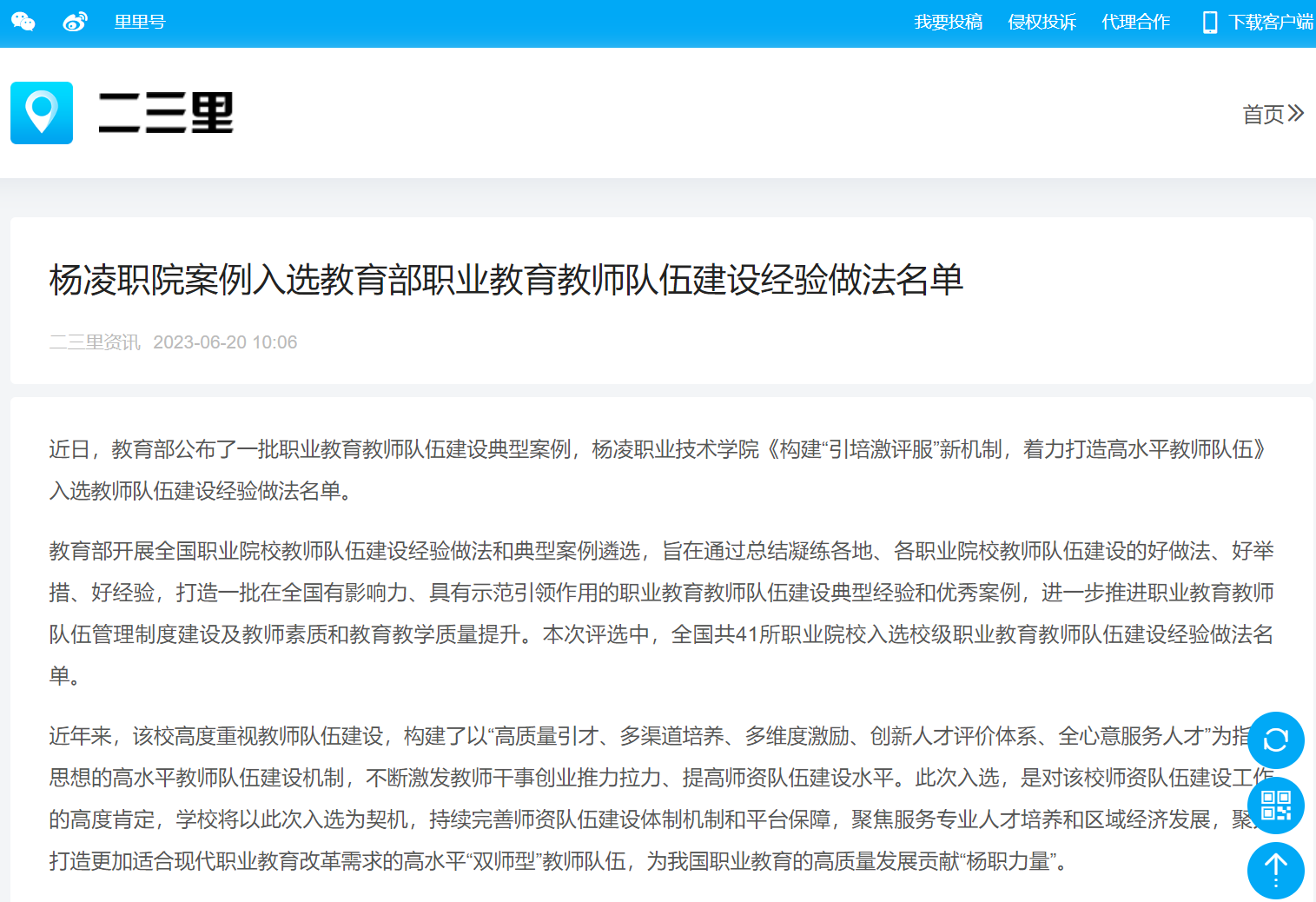 【二三里】杨凌职院案例入选教育部职业教育教师队伍建设经验做法名单