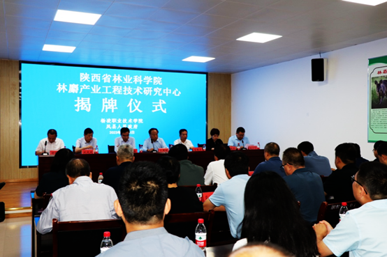 揭牌仪式上,与会领导分别为陕西省林业科学院林麝产业工程技术研究中心、杨凌职业技术学院林麝养殖技术培训基地揭牌。