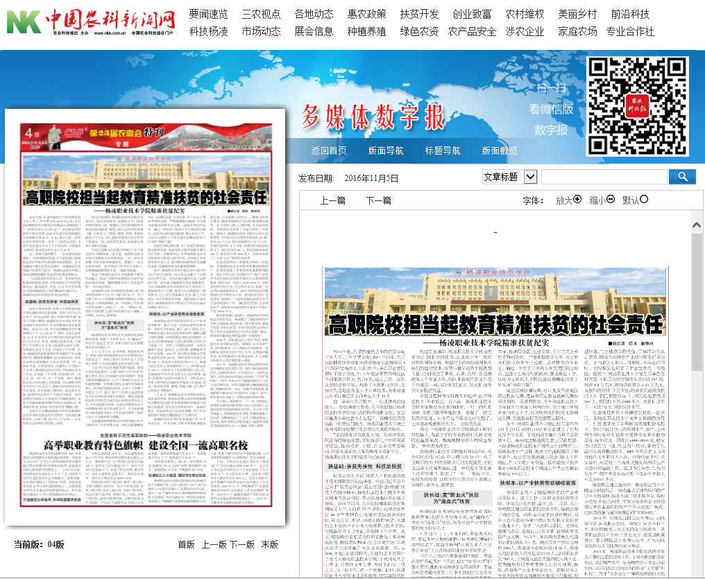 115日,《农业科技报》以“高职院校担当起教育精准扶贫的社会责任---杨凌职业技术学院精准扶贫纪实”报道了我院精准扶贫工作和学院整体情况介绍(详情进入)