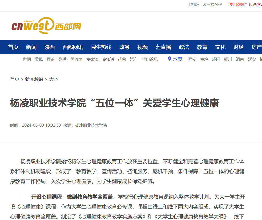 【西部网】杨凌职业技术学院“五位一体”关爱学生心理健康
