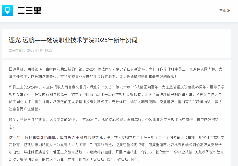 【二三里】逐光·远航——杨凌职业技术学院2025年新年贺词