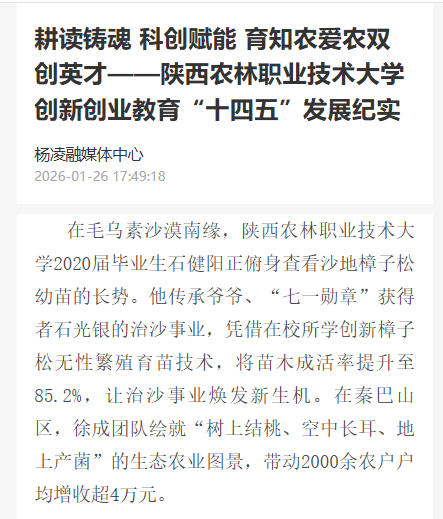 【爱杨凌】耕读铸魂 科创赋能 育知农爱农双创英才——陕西农林职业技术大学创新创业教育“十四五”发展纪实