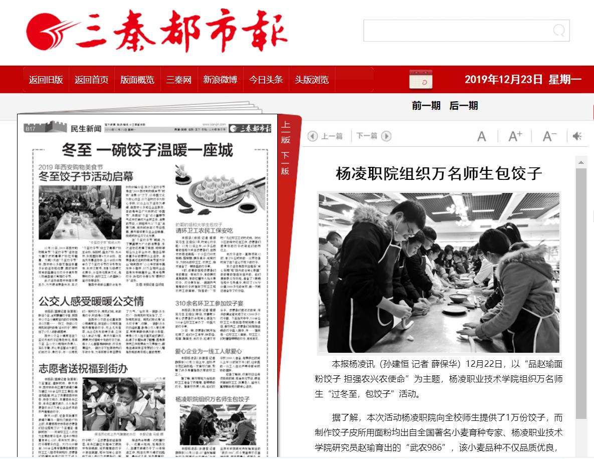 本报杨凌讯(孙建恒 记者 薛保华)12月22日,以“品赵瑜面粉饺子 担强农兴农使命”为主题,杨凌职业技术学院组织万名师生“过冬至,包饺子”活动。