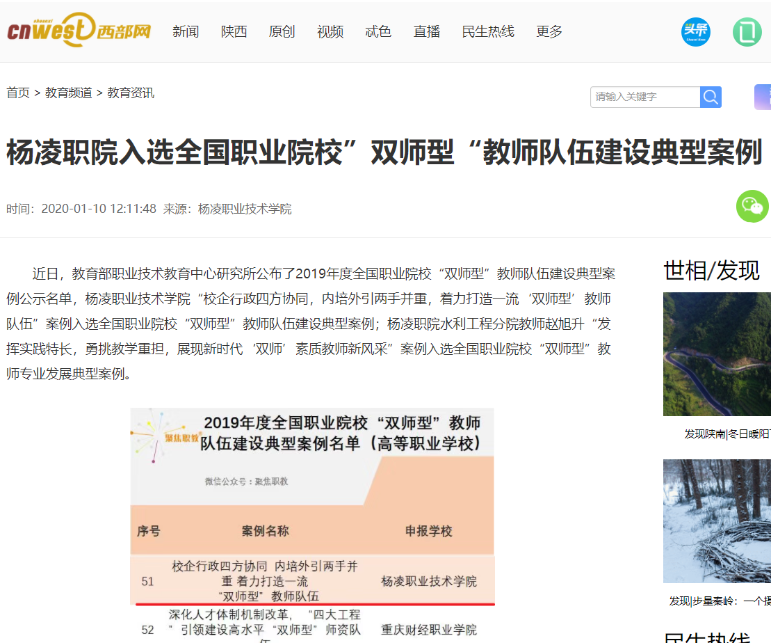 【西部网】杨凌职院入选全国职业院校”双师型“教师队伍建设典型案例