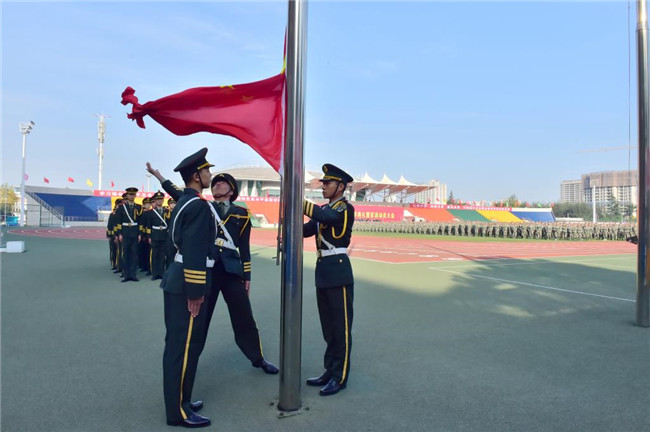 金风送爽、硕果飘香。10月19日上午9时,伴随着雄壮的国歌声和冉冉升起的五星红旗,杨凌职业技术学院2020级新生开学典礼暨军训动员大会在南校区田径场举行。校党委书记陈宁向军训团授旗,中国人民解放军某部队首长、本次军训团团长樊刚作军训动员讲话,党委副书记、校长王周锁作开学讲话。大会由副校长、军训领导小组组长祝战斌主持。