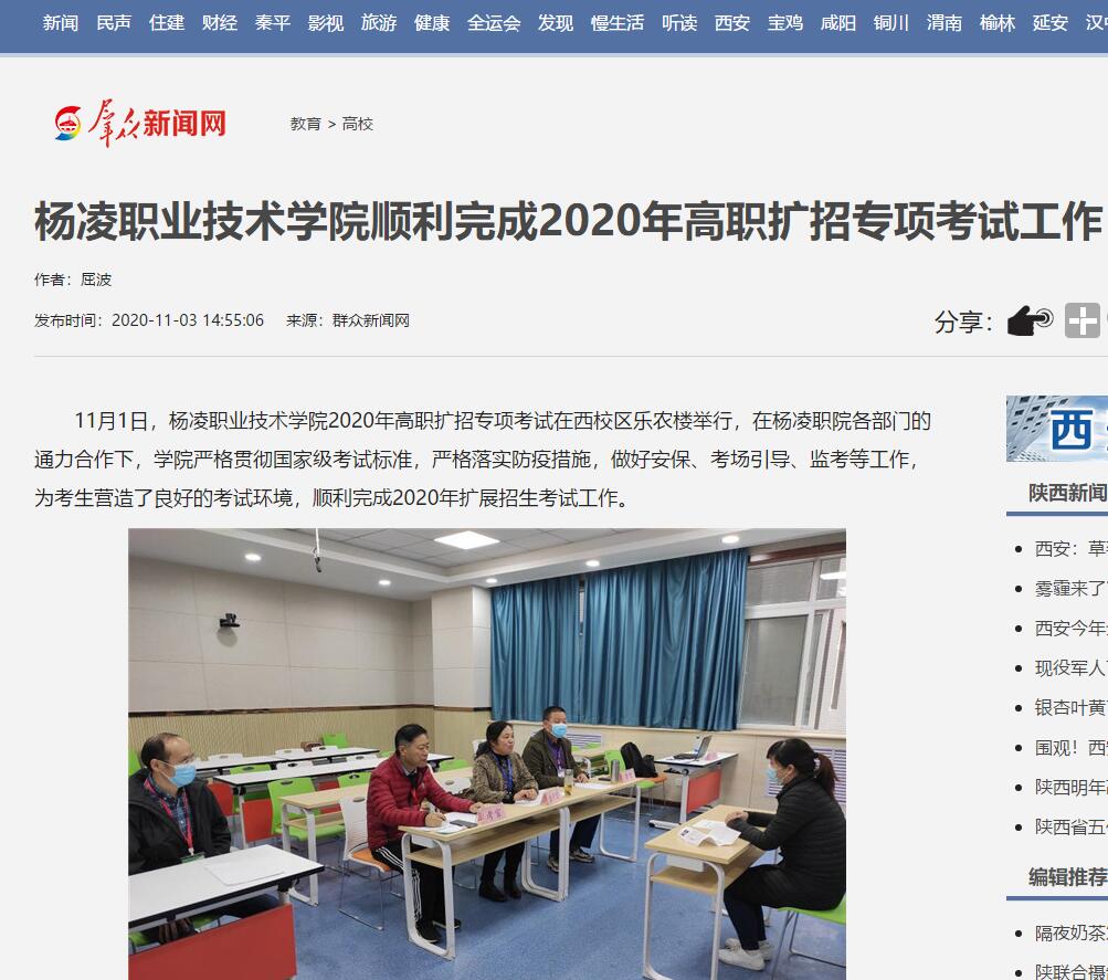 【群众新闻网】杨凌职业技术学院顺利完成2020年高职扩招专项考试工作