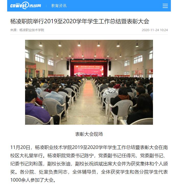 【西部网】杨凌职院举行2019至2020学年学生工作总结暨表彰大会