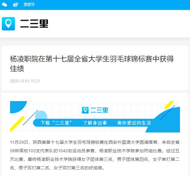 【二三里】杨凌职院在第十七届全省大学生羽毛球锦标赛中获得佳绩