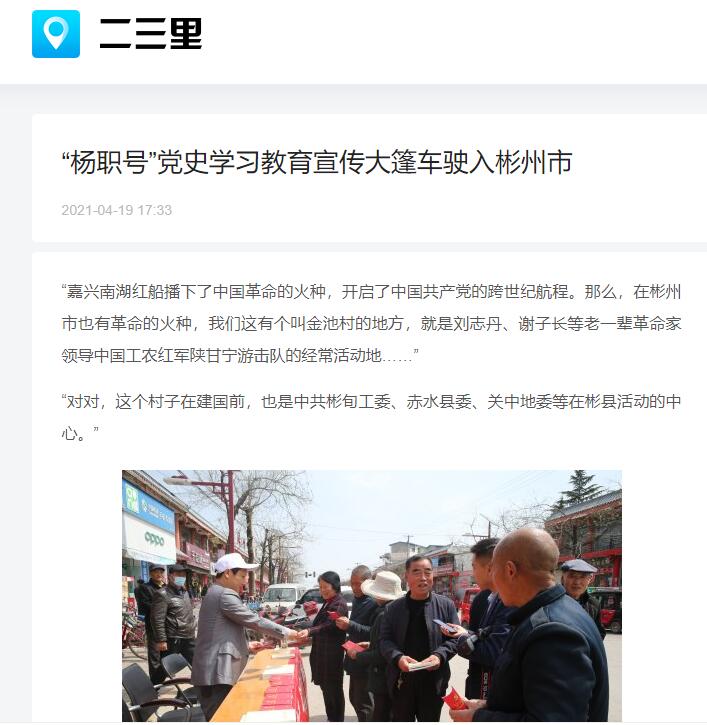 【二三里】“杨职号”党史学习教育宣传大篷车驶入彬州市
