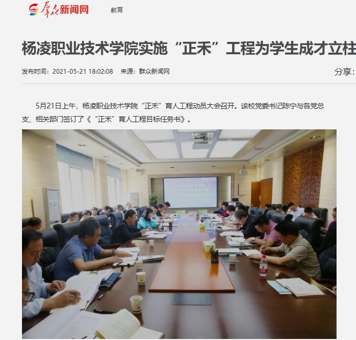 【群众新闻网】杨凌职业技术学院:实施“正禾”工程 为学生成才立柱架梁