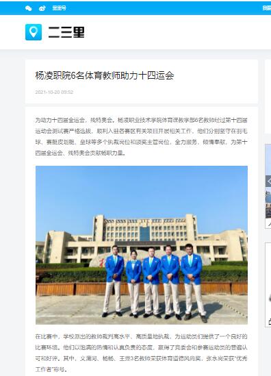 【二三里】杨凌职院6名体育教师助力十四运会